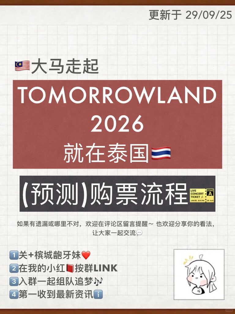 Source: @槟城龅牙妹🤓 Tomorrowland 2026 购票注册的重要性 想要顺利买到 Tomorrowland Thailand 2026 的门票,第一步就是提前注册。根据比利时站的经验,Pre-Registration 是必须的,没有注册就完全没有资格抢票。对于大多数粉丝来说,这是确保购票资格的关键步骤。因此,关注官方消息并在开放注册时第一时间填写资料,是整个购票流程的基础。 Global Journey 套票的优势与劣势 在 Tomorrowland 的历史中,Global Journey 套票一直是最稳妥的选择。它包含交通与住宿,适合想要省心的观众。缺点是价格更高,但胜在优先权大,几乎保证能买到票。对于预算充足的观众,Global Journey 是确保进入音乐节的最佳选择。 普通票的 Pre-Sale 与 Main Sale...