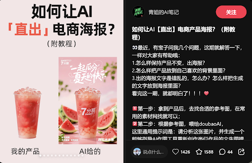 Source: @青姐的AI笔记, 小红书 在快节奏的电商世界,高效产出高质量的营销素材至关重要。传统的海报设计流程复杂且耗时,但随着AI设计技术的飞速发展,现在人人都能利用AI工具快速制作出专业级的电商海报。本教程将详细解析如何通过简单的七个步骤,利用AI绘画工具,从零开始创作出令人惊叹的产品海报。 无论是马来西亚的初创品牌,还是希望在2025或2026年提升AI工具应用能力的电商运营者,掌握这套AI设计工作流都将是效率神器。我们将以西瓜冰冰茶为例,手把手教你如何驯服AI,轻松实现从产品图到精美海报的华丽转身。 步骤一:寻找设计灵感与参考图 设计的第一步是找到合适的参考图。在常用的素材网站上,你可以搜索与自己产品风格相近的图片。对于初学者来说,选择与自己产品透视角度相似的参考图会更容易进行后续操作。 步骤二:利用AI工具反推提示词 找到参考图后,将它上传到AI对话工具(如doubaoAI)。然后,使用以下通用提示词,让AI帮你分析图片并生成一份详细的文生图提示词。这个过程是AI设计的核心,它将图片中的视觉元素(如主体、场景、风格、色彩、构图等)转化为精准的文字描述,为后续的AI绘画提供指令。 步骤三:结合自家产品生成专属提示词 在同一个对话框中,上传你的产品图片,并使用第二道通用提示词。AI会根据你的产品和之前分析的参考图,生成一份专属于你的中文AI绘画提示词,确保最终生成的海报既有创意又忠于你的产品。 步骤四与五:使用AI绘画工具生成海报 有了提示词后,接下来就是AI生图的关键步骤。将生成的提示词输入到AI绘画工具(如jimeng),并上传你的产品图作为“智能参考”,并将参考强度设置为100%。这个设置能确保AI在生成新图像时,保留产品的核心特征,避免失真。 步骤六:生成主标题文案 AI生成的图片可能存在文字错乱的问题。别担心,这是正常的。本教程的最后一步就是解决这个问题。首先,在AI绘画工具(如jimeng)中搜索“文字”,找到一个你喜欢的、合适的字体,把双引号内的文字改成自己的。这个独立的文字文案将作为海报的主标题。 步骤七:PS合成 将AI生成的产品海报和单独生成的主标题文案都下载下来。在Photoshop等图像处理软件中,将这两张图合成到一起。为了让文字和背景自然融合,可以使用“滤色”等混合模式。这样,你就能得到一张既有AI创意,又包含清晰文字的最终电商海报。 优化AI设计工作流的额外技巧 为了让你的AI设计工作流更顺畅,这里有一些额外的技巧: 这套方法不仅适用于电商海报,也可以用于社交媒体配图、产品宣传图等多种场景。掌握了这套AI设计流程,你将能够大大提高工作效率,用最少的时间和成本,创作出最棒的作品。 Hashtags #AI设计 #电商海报 #海报设计 #AI绘画 #AI工具...