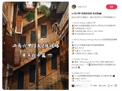 📌 Credit:@荧桃小丸子(小红书) 在出发前可以先参考我上一篇分享的《马六甲美食篇》~这篇整理了10个我自己亲身体验过、觉得很值得一去的景点和体验,好拍、好玩又充实! 📍1. Encore Melaka 又見馬六甲 ✨ 亚洲首个360度旋转剧场,由中国著名导演王潮歌执导,融合舞蹈、灯光、音乐与历史叙述,全程无对白,仅以视觉与动作呈现马六甲多元族群的发展历程。 💡 看点: 🪪 票价参考: 🎫 座位推荐:Zone C3 第一排 R33-R37,前面无遮挡,拍照和视角都很好。 📍2. Baba & Nyonya Heritage Museum 峇峇娘惹祖屋博物馆 ✨...
