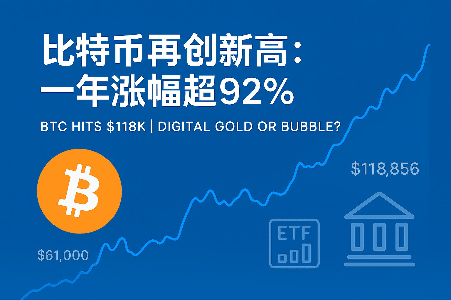 📌比特币突破历史新高 $118,856:机构抢筹、ETF 加持,下一站 $140,000? Bitcoin 在 2025 年 7 月创下历史最高价,短时间内突破 $118,856,引发全球资本市场关注。这波涨势背后有三大核心驱动力:ETF 资金涌入、机构加码持有、以及监管政策转向。这不仅是加密市场的里程碑事件,也代表比特币逐步被主流金融世界所接受。 📈 比特币创下有史以来最高价格 📌 关键数据概览: 这次的上涨是比特币历史上第六次大幅度突破前高,也是首次在 ETF 与主权政策共同加持下突破心理关口 $100,000。这种强势上涨不仅反映了市场对稀缺资产的追捧,也预示着数字黄金的全球共识日益巩固。 ⏳ 比特币创始历史速览 比特币并非一夜爆红,其发展历程体现了技术进步、理念革命与社会信任的积累: 🏦 三大上涨驱动力解析 📊...