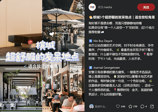 Source: @JCO.media 槟城必去的发呆景点推荐|Malaysia 2025/2026 轻旅行 槟城(Penang)不仅是马来西亚著名的美食天堂,更充满许多可以放空、偷得浮生半日闲的角落。如果你计划在 2025/2026 年到访马来西亚,不妨把这些槟城的“发呆圣地”列进你的行程里! Hin Bus Depot|艺术与慵懒午后的完美结合 这座由老巴士站改建而成的艺术空间,是槟城近年来最具特色的打卡胜地。平时会有户外咖啡车、手作市集或展览,不需要特别安排节目,坐在院子里感受阳光和树影就很治愈。 Journal Georgetown|复古建筑里的慢时光 这间隐藏在乔治市的小众景点,充满复古气息。一楼是艺术选物店,楼上则是展览空间。非常适合独自探访,无论你想看展、看书,或只是找个安静空间发呆,这里都非常适合。 Penang Digital Library|图书馆里的 Chill 空间 别以为图书馆就等于严肃。槟城这座数码图书馆有大片绿地、落地窗、木质风格空间,是笔电族或阅读爱好者的天堂。早晨光线尤其柔美,特别适合想在马来西亚旅行中找个角落安静工作的旅人。 ChinaHouse Courtyard|老爵士与蛋糕的偷闲午后 ChinaHouse 早已是槟城 café...