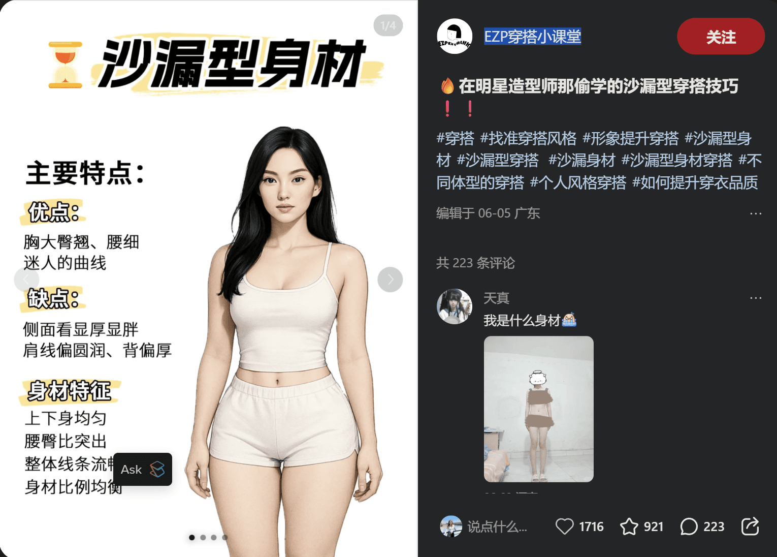 Source: @EZP穿搭小课堂 沙漏型身材特点解析 沙漏型身材是许多人梦寐以求的“黄金比例”身材。马来西亚2025/2026时尚圈中,这种体型依旧是热门焦点。其主要特点包括: 不过,这类身材也有些小缺点,例如: 因此,沙漏型身材在穿搭上虽然选择多,但也有一些禁忌需要避免。 沙漏型身材上衣搭配建议 推荐单品:凸显身材曲线 为了凸显沙漏型身材的优势,2025/2026马来西亚流行以下上衣款式: 避免单品:易显壮或遮住曲线 沙漏型身材裤装搭配建议 在马来西亚2025/2026,适合沙漏型身材的裤装关键在于“突出腰臀曲线、平衡上下身比例”。推荐款式有: 适合单品 不适合单品 沙漏型身材连衣裙搭配建议 推荐款式:凸显腰线,展现曲线 不适合款式:模糊腰线、显胖 这些款式会掩盖身材优势,让沙漏型曲线消失。 马来西亚2025/2026沙漏型身材穿搭重点 综合以上搭配技巧,马来西亚2025/2026的沙漏型身材女生在穿搭时要记住: ✅ 一定要凸显腰线 ✅ 避免过度宽松或直筒版型 ✅ 合理平衡上下身比例...
