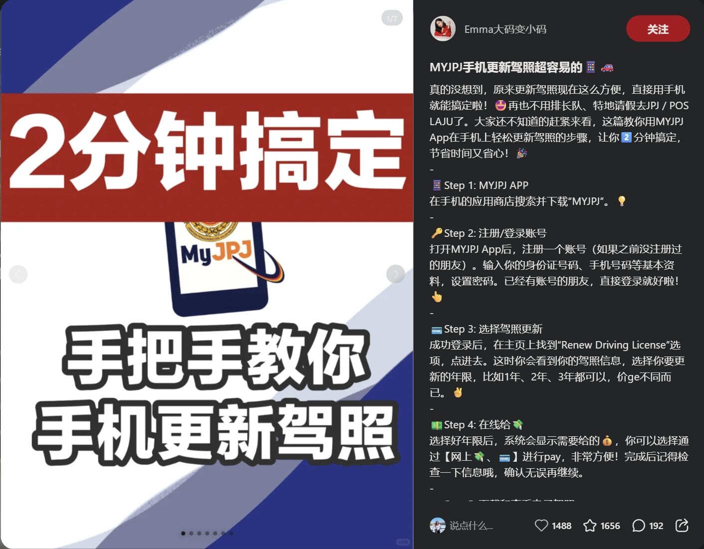 📌 Source: @Emma大码变小码 马来西亚驾照更新进入全线上时代! 随着MYJPJ App功能全面升级,马来西亚驾驶人士终于可以不跑JPJ、不排队、不请假,只需一台手机就能完成驾照更新。对于在2025/2026需要续驾照的你,这篇就是最实用、最高效的教程! MYJPJ线上更新驾照步骤详解 Step 1 – 下载 MYJPJ APP Step 2 – 注册 / 登录账号 MYJPJ驾照更新流程全解析|不出门也能搞定 Step 3 – 选择“Renew Driving License”功能...