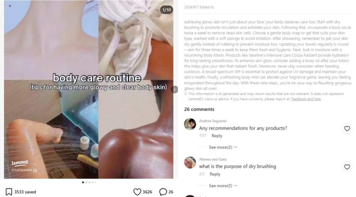 Credit: @saniyaaaa.gg on Lemon8 "I once rushed the shower wash, towel off, task accomplished. My skin was pale, not golden. But since I committed to a ritual, slow nine-step skin care ceremony, all changed. No high-flown promises, just loving, unhurried repetition — and now I glow from head to toe."...