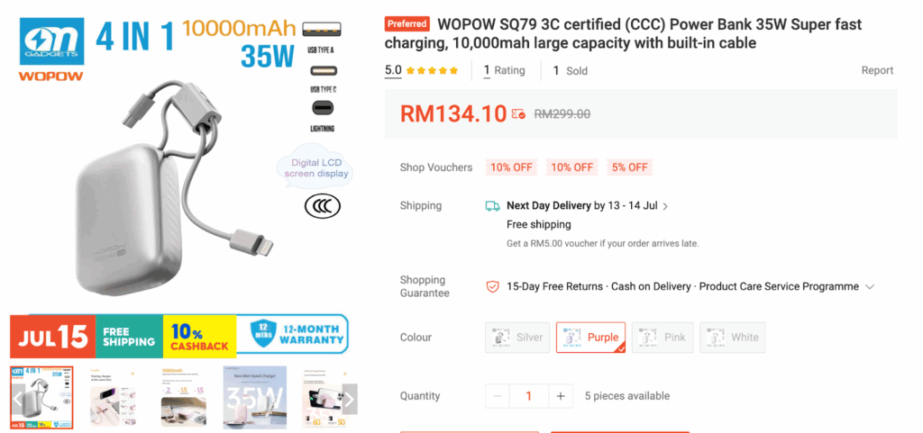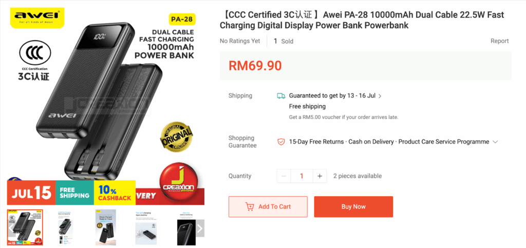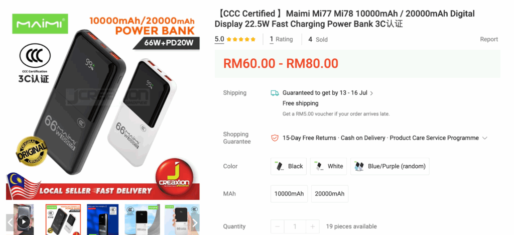 Recommended CCC-Certified Power Banks (Available on Shopee Malaysia)