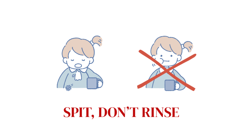 After brushing, most individuals tend to naturally spit out the water, but in doing so, they rinse out the fluoride before it can become effective. Dentists recommend simply spitting out any extra toothpaste and not rinsing at all. Leaving a thin amount of residue on your teeth will allow it to keep building enamel and protecting against cavities during the day or even overnight.