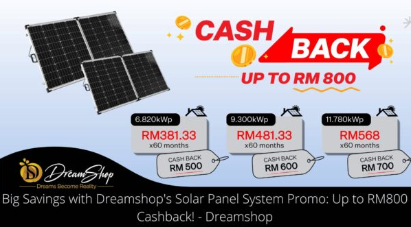 - Dreamshop Offer: Vouchers for solar panel systems, allowing customers to redeem amounts from RM1 to RM10,000.