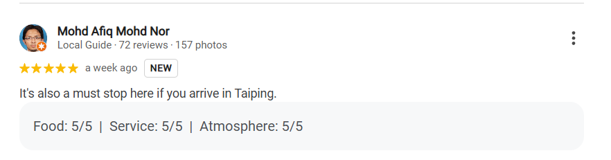 Mohd Afiq Mohd Nor shared, “It’s also a must-stop here if you arrive in Taiping.”